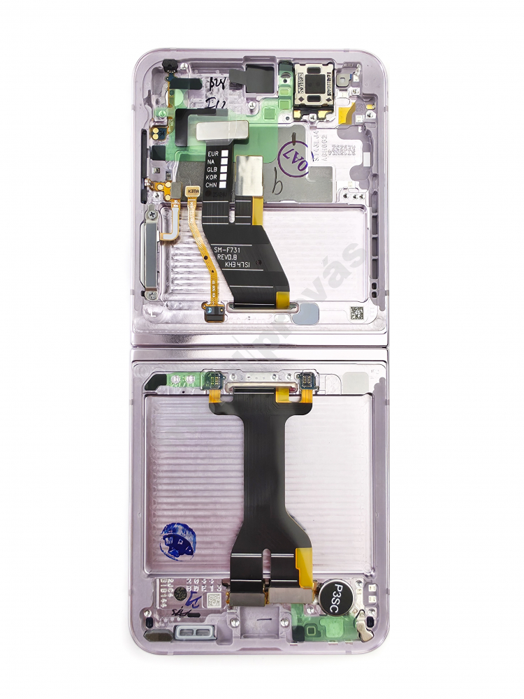 originální LCD displej + sklíčko LCD + dotyková plocha + střední rám Samsung F731B Galaxy Z Flip5 5G růžová